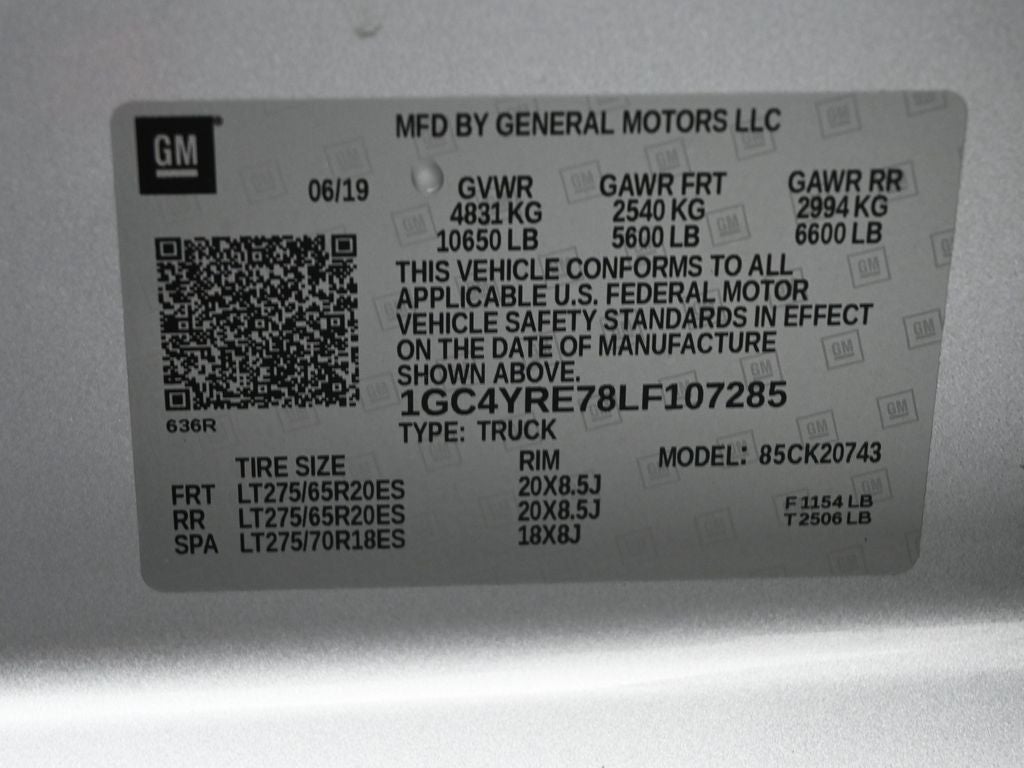 - Tires, LT275/65R20 all-terrain, blackwall