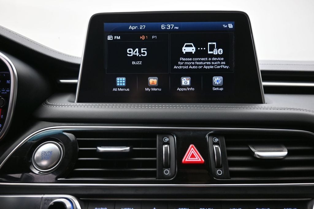- Radio: AM/FM/SiriusXM/HD Audio System -inc: 6 channel internal amplifier, 6 speakers including subwoofer, 8" touchscreen display, front 12V power outlet, steering wheel controls, Android Auto, Apple CarPlay, 2 front USB ports, auxiliary input jack, Bluetooth® hands-free phone system and Genesis Connected Services