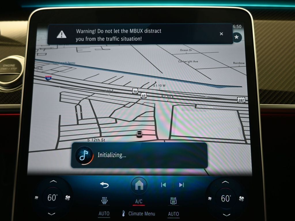 - Radio: Burmester 3D Surround Sound System -inc: sound personalization, 12.8" OLED touchscreen center display, MBUX w/navigation and 'Hey Mercedes' voice control, augmented video for navigation, front wireless charging, wireless smartphone integration (Apple CarPlay, Android Auto), 8 USB-C ports (4 front, 4 rear) and SiriusXM Radio w/Platinum trial plan