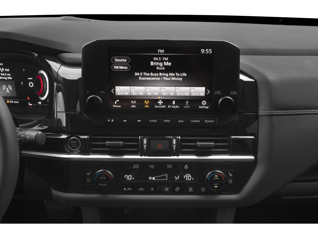 - Radio: AM/FM Audio System -inc: Radio Data System (RDS), wireless Apple CarPlay, Android Auto, 9" color display w/multi-touch control, SiriusXM Satellite Radio w/advanced audio features, 2 illuminated front USB connection ports (1 type A, 1 type C) for iPod interface and other compatible devices, Bluetooth hands-free phone system and streaming audio, Speed-Sensitive Volume control (SSV), hands-free text messaging assistant and Siri Eyes-Free/Google Assistant voice recognition